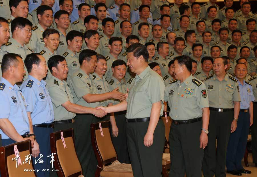29日下午,习近平来到沈阳军区机关,接见驻沈阳部队师以上干部,听取沈阳军区工作汇报。习近平对近年来沈阳军区部队建设取得的成绩给予充分肯定。他强调,贯彻落实党在新形势下的强军目标,关系国防和军队建设全局,关系我军有效履行使命任务。要坚持在部队建设中深入贯彻落实强军目标,大力推进强军目标学习教育,坚持理论联系实际,搞好转化运用,使之成为加强部队全面建设、深化部队改革创新、推进军事斗争准备的强劲动力。要始终扭住听党指挥这个强军之魂,以积极主动的工作占领部队思想阵地、文化阵地、舆论阵地,确保部队绝对忠诚、绝对纯洁、绝对可靠,任何时候任何情况下都坚决听从党中央、中央军委指挥。各级党委要发挥在实现强军目标中的核心领导作用,着力提高科学决策、民主决策、依法决策水平。要推动贯彻落实强军目标向基层拓展、向末端延伸,发挥广大官兵为实现强军目标而奋斗的积极性、主动性、创造性,切实打牢实现强军目标的坚实基础。