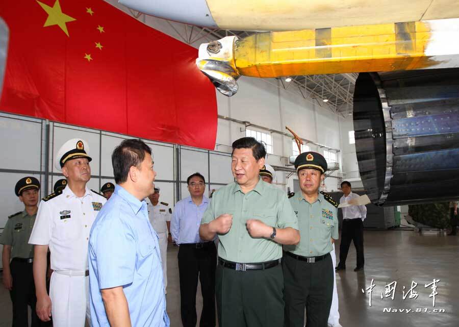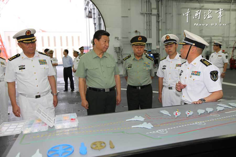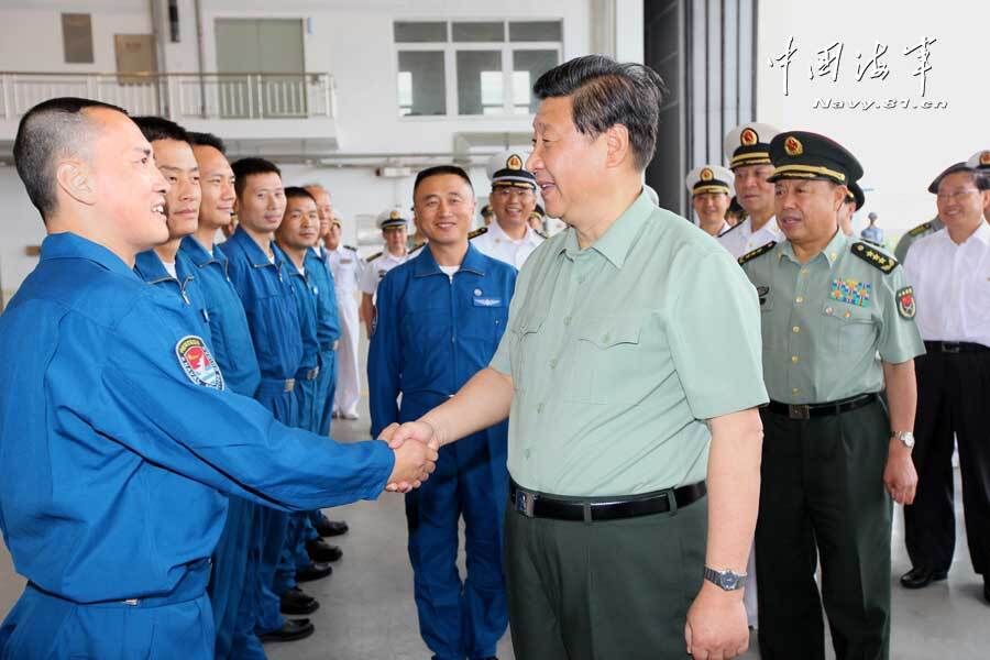 习近平一直十分关心我国第一艘航空母舰建设和部队训练。28日上午,他一下飞机就冒着风雨来到海军某舰载机综合试验训练基地,观看舰载机滑跃起飞、阻拦着陆训练,实地察看有关设备。看到飞行员们干净利落完成了各项训练课目,习近平十分高兴,为他们热情鼓掌。习近平亲切接见了首批上舰指挥员、试飞员和舰载机飞行员,高度赞赏飞行员在复杂气象条件下表现出的过硬本领和精湛技艺。习近平还仔细听取了舰载机设计和性能介绍,要求有关科技人员认真分析战机试飞数据,不断攀登科技高峰。临别时,他勉励大家再接再厉、深入钻研、勤学精练,早日成为优秀的航母舰载机飞行员。