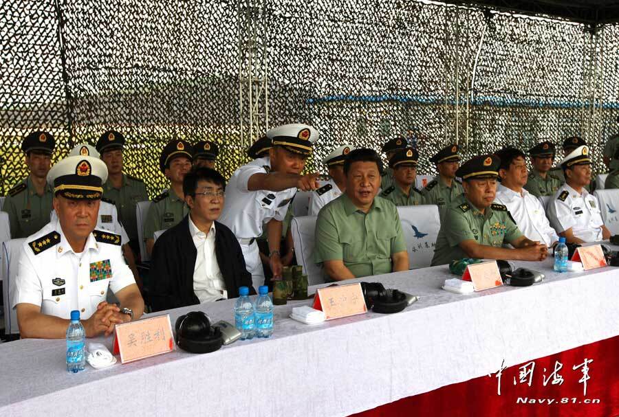 习近平一直十分关心我国第一艘航空母舰建设和部队训练。28日上午,他一下飞机就冒着风雨来到海军某舰载机综合试验训练基地,观看舰载机滑跃起飞、阻拦着陆训练,实地察看有关设备。当天下午,习近平又风雨兼程赶往大连,登上停泊在大连港的辽宁舰。摄影:解放军报记者周朝荣