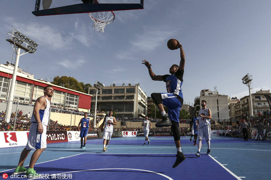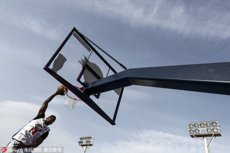 参赛的球星们在比赛中为球迷频秀暴扣。