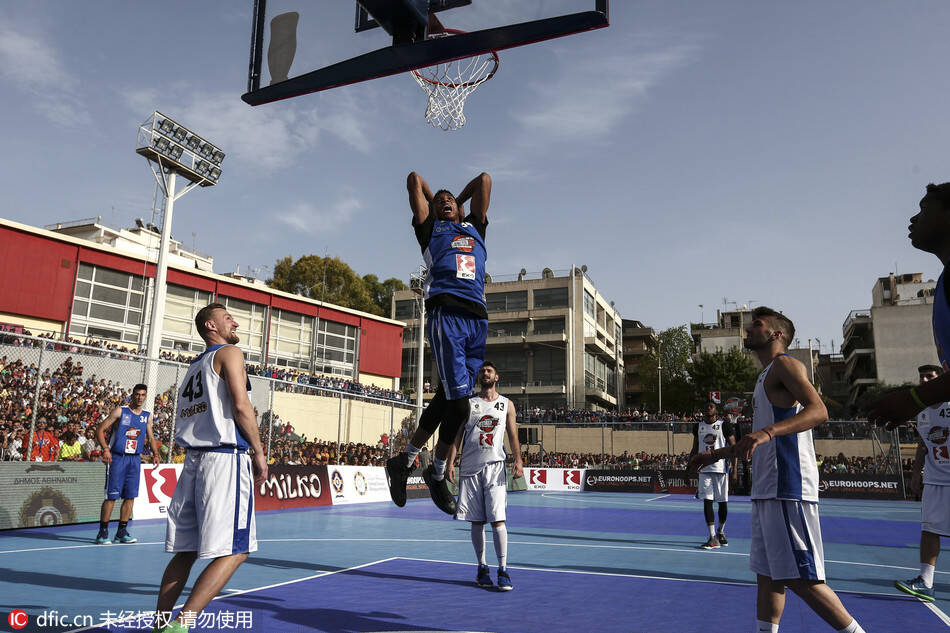 由于有NBA球星参赛,球场边也吸引了好多球迷。图为波神暴扣。