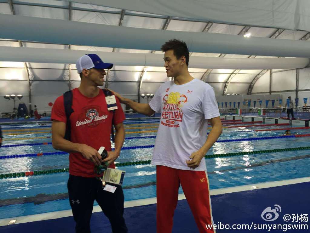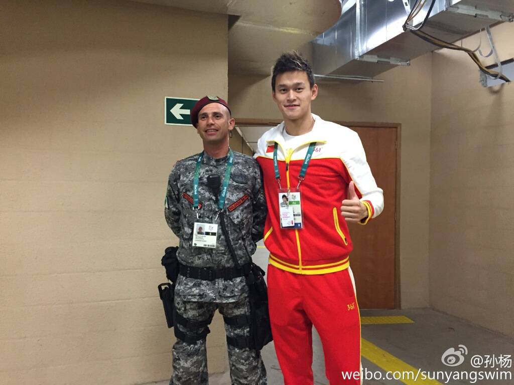 近日中国游泳队已经在里约进行了试水训练,目前状态良好。北京时间8月4日,伦敦奥运会游泳冠军、中国游泳名将孙杨在里约碰见了许久未见的老朋友,开心的他直言对里约的生活很满意。