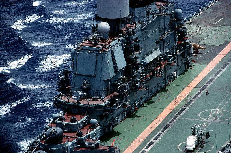 从“基辅”级航母的4号舰“戈尔什科夫”号开始,苏联开始为航母装备“火星-贸易风”舰载相控阵雷达,该型雷达是苏联首款舰载阵列化相控阵雷达,但该型雷达仅装备了“戈尔什科夫”号与“库兹涅佐夫”号,因为雷达自身问题很大,装舰后几乎从未开机,成为苏联航母设计,尤其是舰岛设计的最大败笔。图为“库兹涅佐夫”号航母。