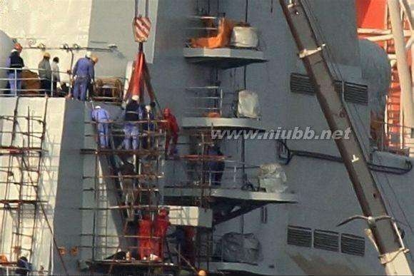 图为“辽宁”号航母安装舰载相控阵雷达时的情况。