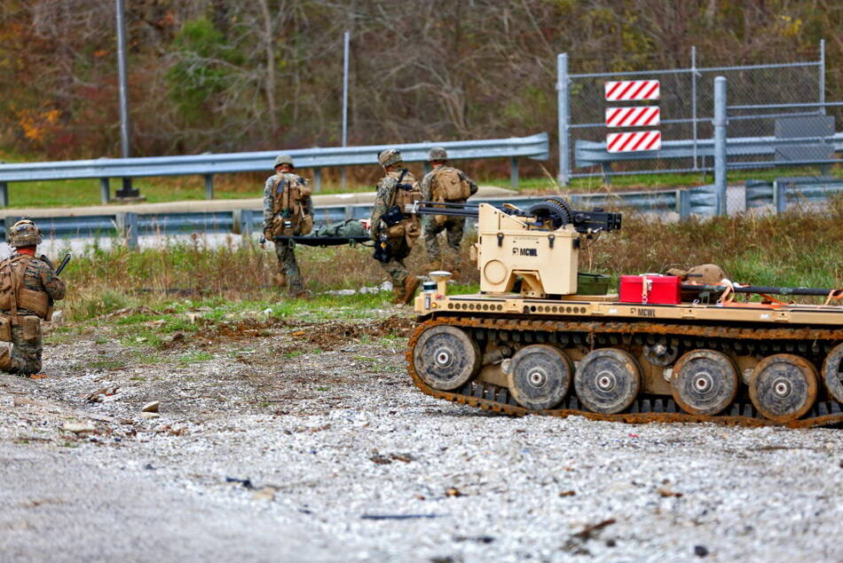美国海军陆战队正在检测器最新的作战机器人系统,目前该系统在印第安纳州进行测试。